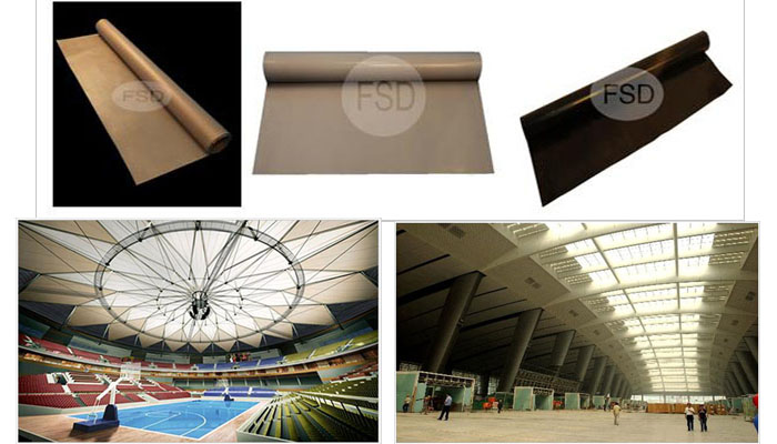 建筑屋面防水、屋頂防水布、帳篷、建筑頂棚、遮蓋篷布、船上蓋布、防水防火膜材,各種運(yùn)動(dòng)場(chǎng)所的頂蓬、車站亭蓬、陽傘、景觀蓬等。