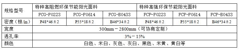 普絲綸(PLASELUN )PCG-CPCG-F、PCP-C系列特種功能性遮陽(yáng)(窗簾)(陽(yáng)光面料)不同于傳統(tǒng)的各式遮陽(yáng)簾,窗簾;選用超細(xì)、高強(qiáng)、高阻燃等特種功能纖維,采用德國(guó)技術(shù),德國(guó)設(shè)備,經(jīng)多道特殊嚴(yán)密工藝制備而成.該遮陽(yáng)卷簾能有效阻隔太陽(yáng)光和紫外線;過(guò)濾昡目日光,獲取自然光線,提高視覺(jué)舒適度;有效隔阻熱輻射,高效環(huán)保節(jié)能,改善室內(nèi)品質(zhì)有益于健康,遮陽(yáng)的同時(shí)阻隔紫外線防止室內(nèi)裝飾材料和物品的褪色和損壞。